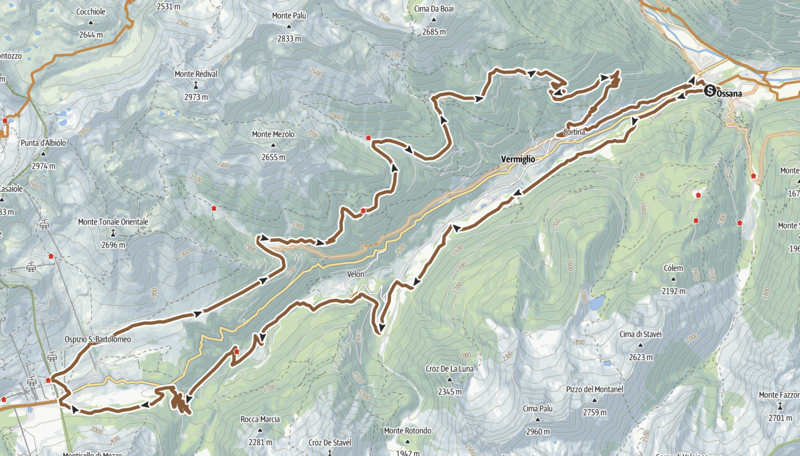 Itinerario: Dal Passo del Tonale, l'itinerario procede lungo una strada sterrata che conduce all'Ospizio San Bartolomeo, noto anche come La Mirandola. Raggiunto il bivio che indica la direzione per la Val di Strino, ci si dirige verso la discesa a destra.